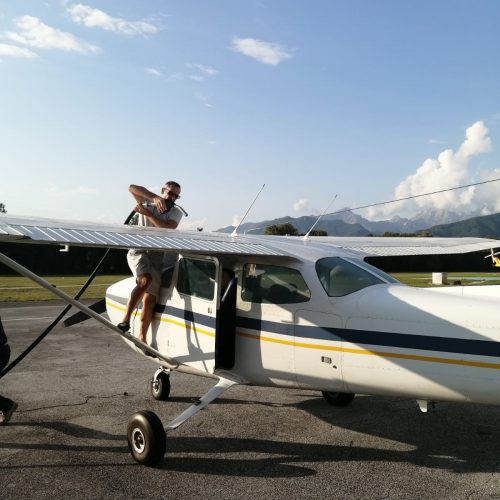 Pilotare e ballare rimano insieme. A mio avviso ci sono delle similitudini che ho il piacere di descrivere per voi. Procediamo con ordine, cosa sempre gradita e necessaria per farsi comprendere. In milonga conosci un sacco di gente, persone che nella vita non sono solo tangueros/as. Il protagonista di questa storia è un tanguero, conosciuto per caso e, con il quale ho divinamente ballato, di nome Mattia. Capita in questi casi di chiedere qualcosa in più del solito nome di battesimo, della residenza e da quanto tempo balli! Scopri magari i loro mestieri e i loro hobby e, rimani sempre sorpreso nel considerarli da un altro punto di vista che al momento della prima tanda, nemmeno immaginavi. Talvolta, come in questo caso, nasce una amicizia e una tale fiducia, da voler portare l’altro/a nel tuo mondo o nel tuo giardino segreto, come asserisce Mattia, considerando il volare come stare sospesi sopra la realtà quotidiana. Così si organizza un’uscita per provare l’esperienza di volare. A seguito di tale vissuto, vi garantisco che volare è come ballare!