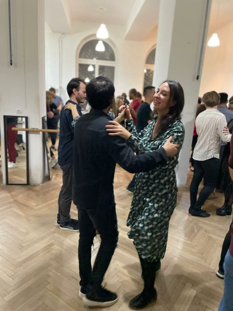 Po pierwszej lekcji próbnej zapraszamy na spotkanie towarzyskie w grupie początkujących i doświadczonych tancerzy, na którym będziecie mogli porozmawiać o tangu, zadać wszystkie nurtujące Was pytania i zobaczyć, jak wygląda prawdziwa milonga (impreza tangowa). Przygotujemy dla Was piwo i przekąski, ale możecie też przynieść własne napoje. To miejsce i czas dla Was!